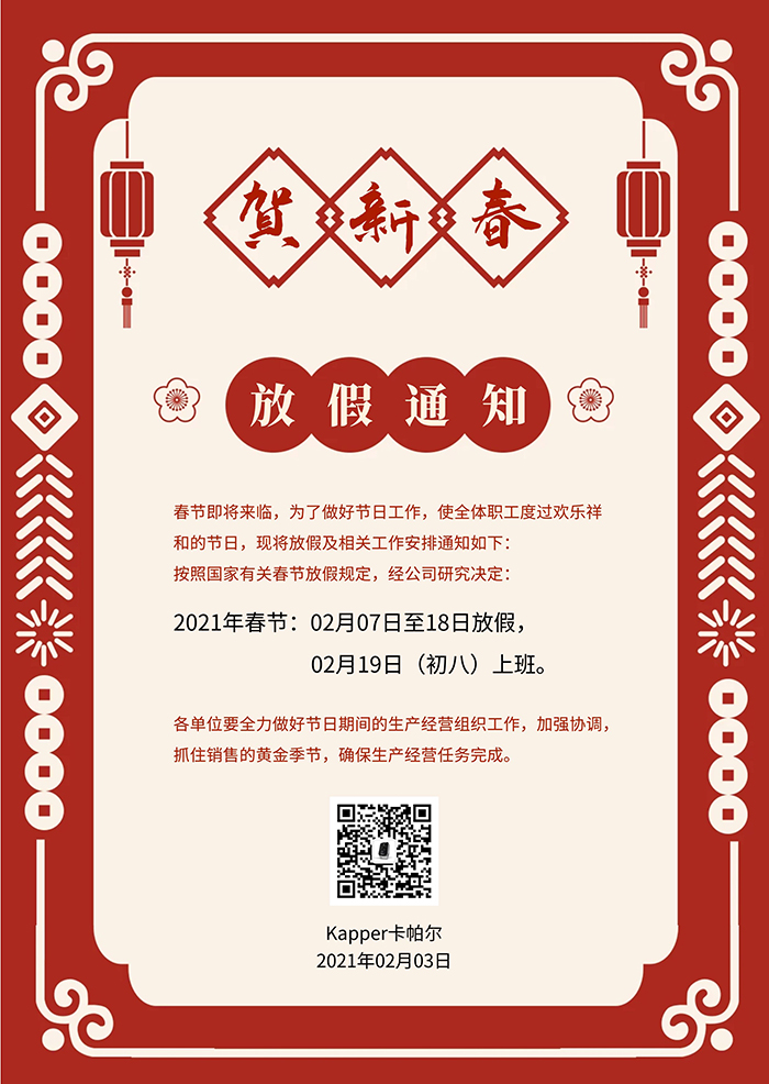 Kapper卡帕爾春節(jié)放假通知