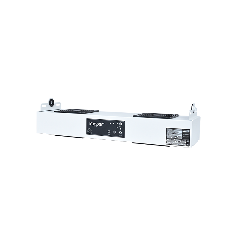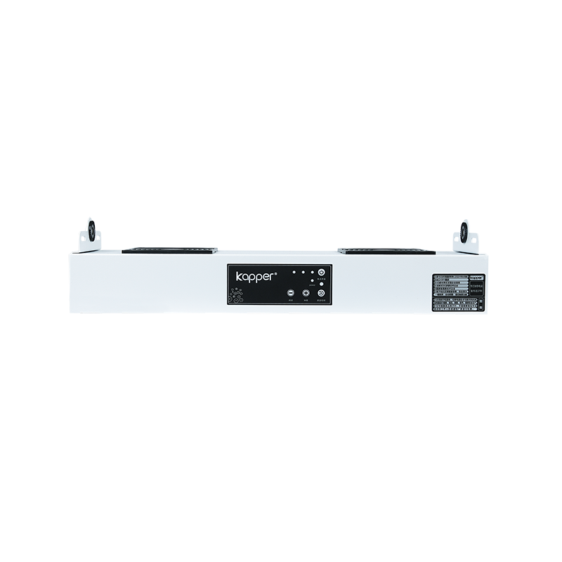 • KP1002D第4代半智能型懸掛式雙頭離子風機卡帕爾公司研制生產的消除物體表面靜電的智能型電裝置。