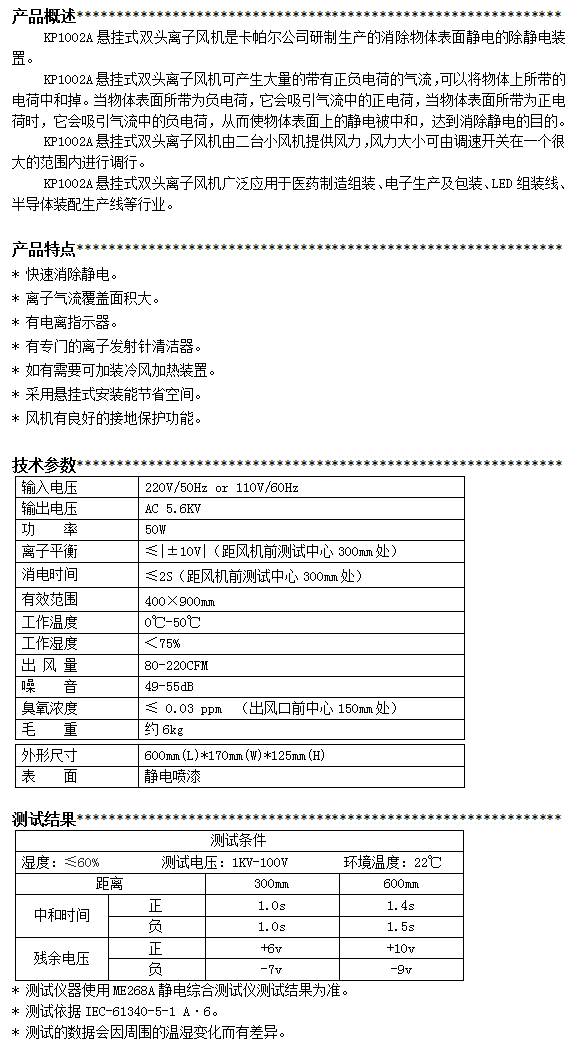 KP1002A第三代懸掛式雙頭離子風機