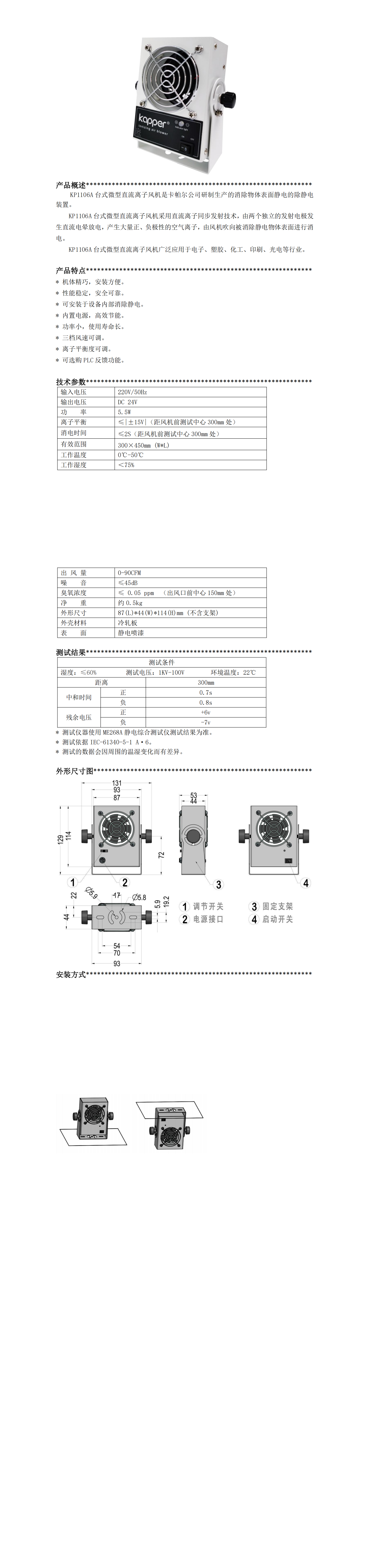 KP1106A 臺式微型直流離子風機