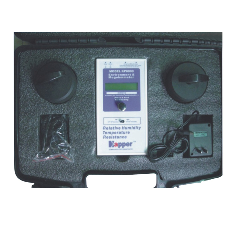 KP8000重錘式表面電阻是集阻抗表,集阻抗、濕度、溫度三種測量儀表一體的測試儀。設計是在物質生產的各個方面,包括工程,維修,質量控制,來料檢驗,生產,科研,或為防靜電地墊,地板飾面,油漆,手腕帶,罩衫銷售部門使用的測試,鞋類,袋子和容器。