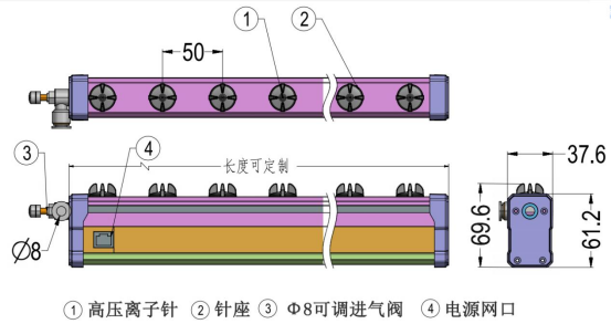 • 1、為棒型、橫置式靜電消除器。