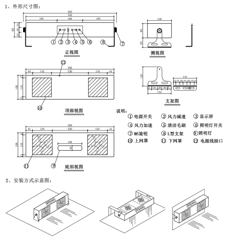 KP102A 第5 代智能型懸掛式雙頭離子風機可產生大量的帶有正負電荷的氣流,可以將物體上所帶的電荷中和掉。當物體表面所帶為負電荷,它會吸引氣流中的正電荷,當物體表面所帶為正電荷時,它會吸引氣流中的負電荷,從而使物體表面上的靜電被中和,達到消除靜電的目的。