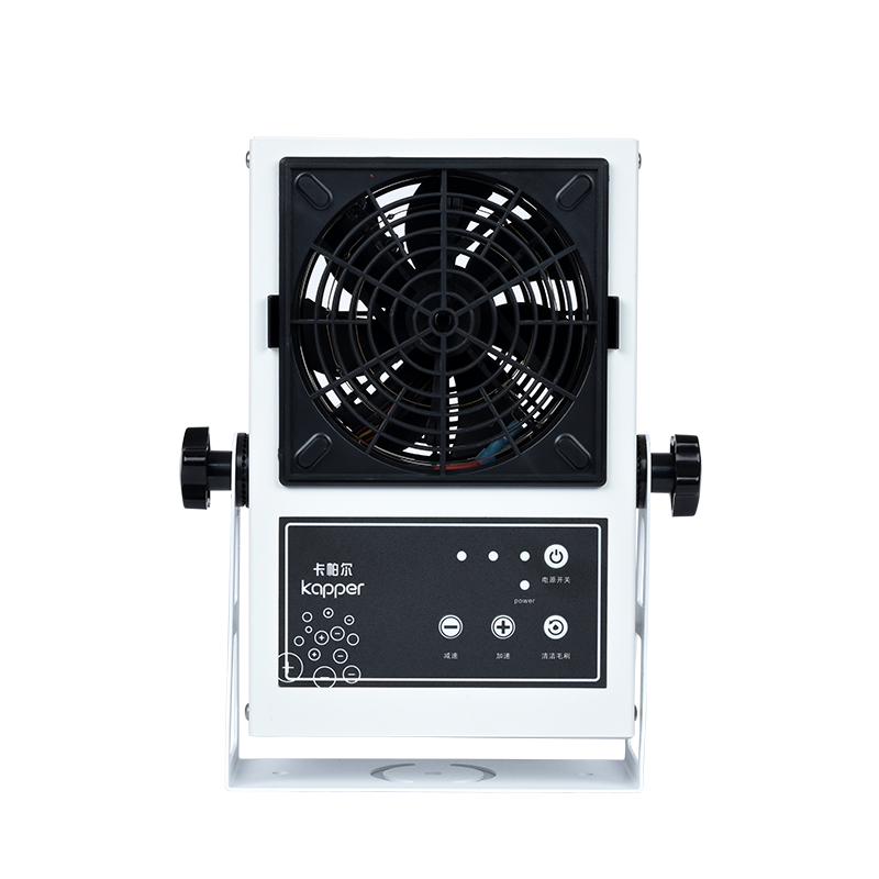 KP1001D半智能型臺式離子風機小風機提供風力,風力大小可在按鍵進行調節發射針毛刷具有自動清潔功能,免手工清潔
